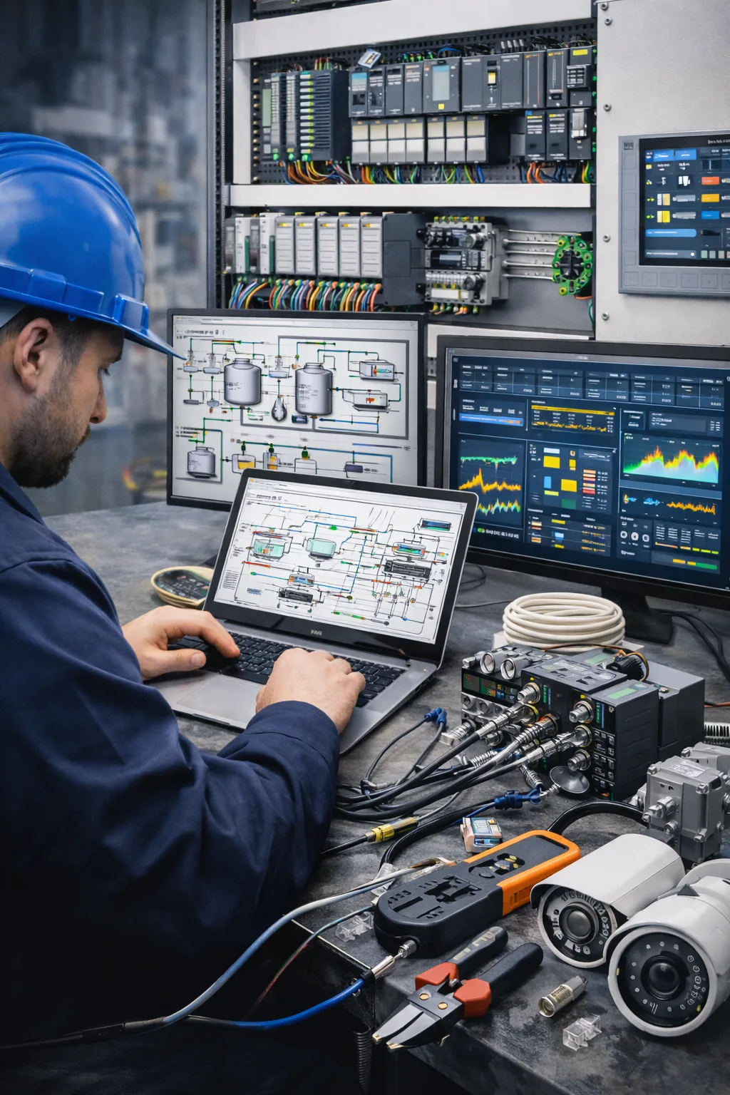 Автоматизируем инженерные и технологические системы: сбор данных, управление, аварийные сценарии, диспетчеризация и отчёты. Настроим PLC/SCADA и обеспечим поддержку после запуска.