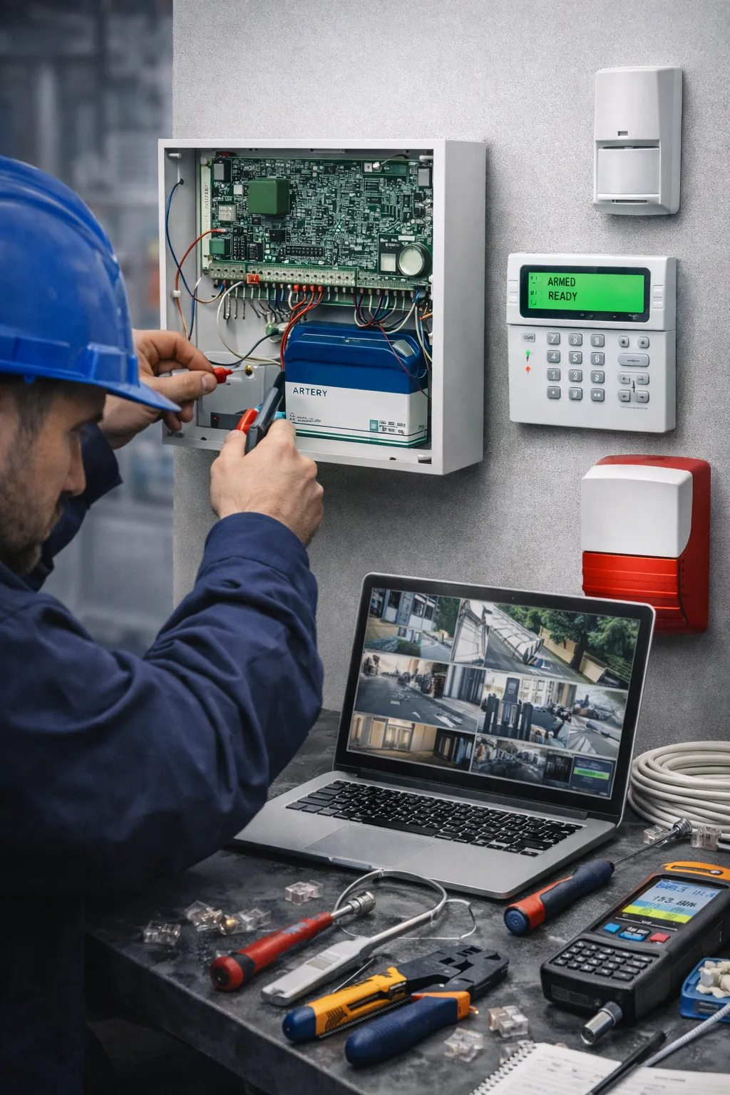Настраиваем передачу событий на пост охраны/пульт, тестируем сценарии тревоги и уведомления.