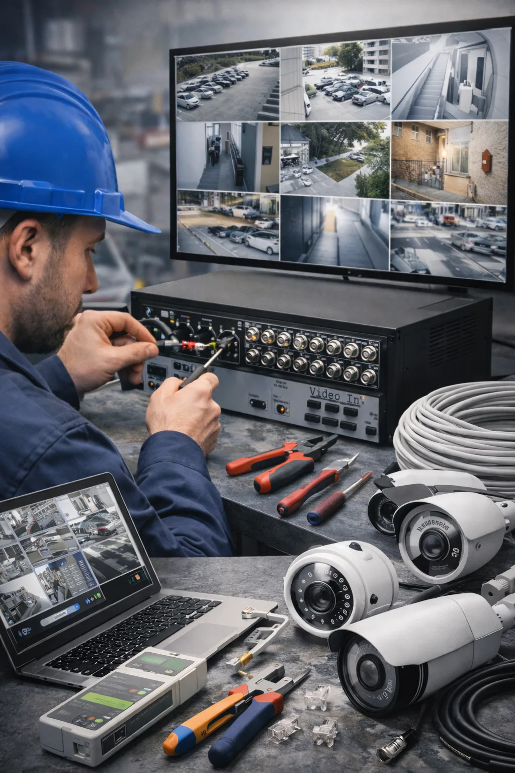 Устанавливаем камеры, прокладываем линии, настраиваем запись, детекцию, удалённый доступ и резервирование.